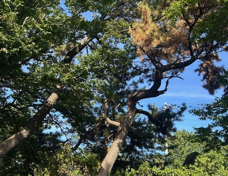境内の松の木が松くい虫に